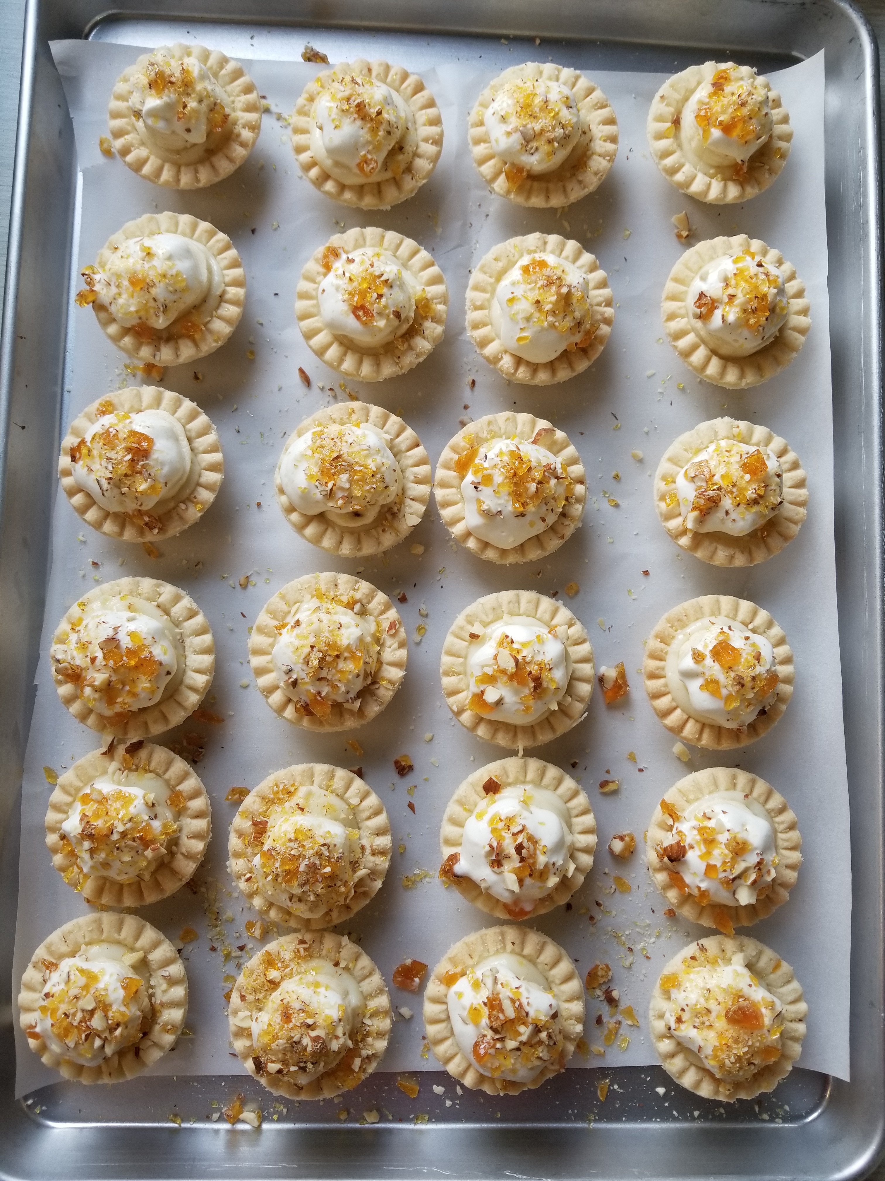 -This is the easy part. There a few options for frozen shells in the grocery store. Choose your favourite brand and bake them according to their specifications. I also poke holes with a fork in the bottom of the tarts and put a little piece of parchment paper with pie weights in them to prevent the shells from puffing up too much when they bake.