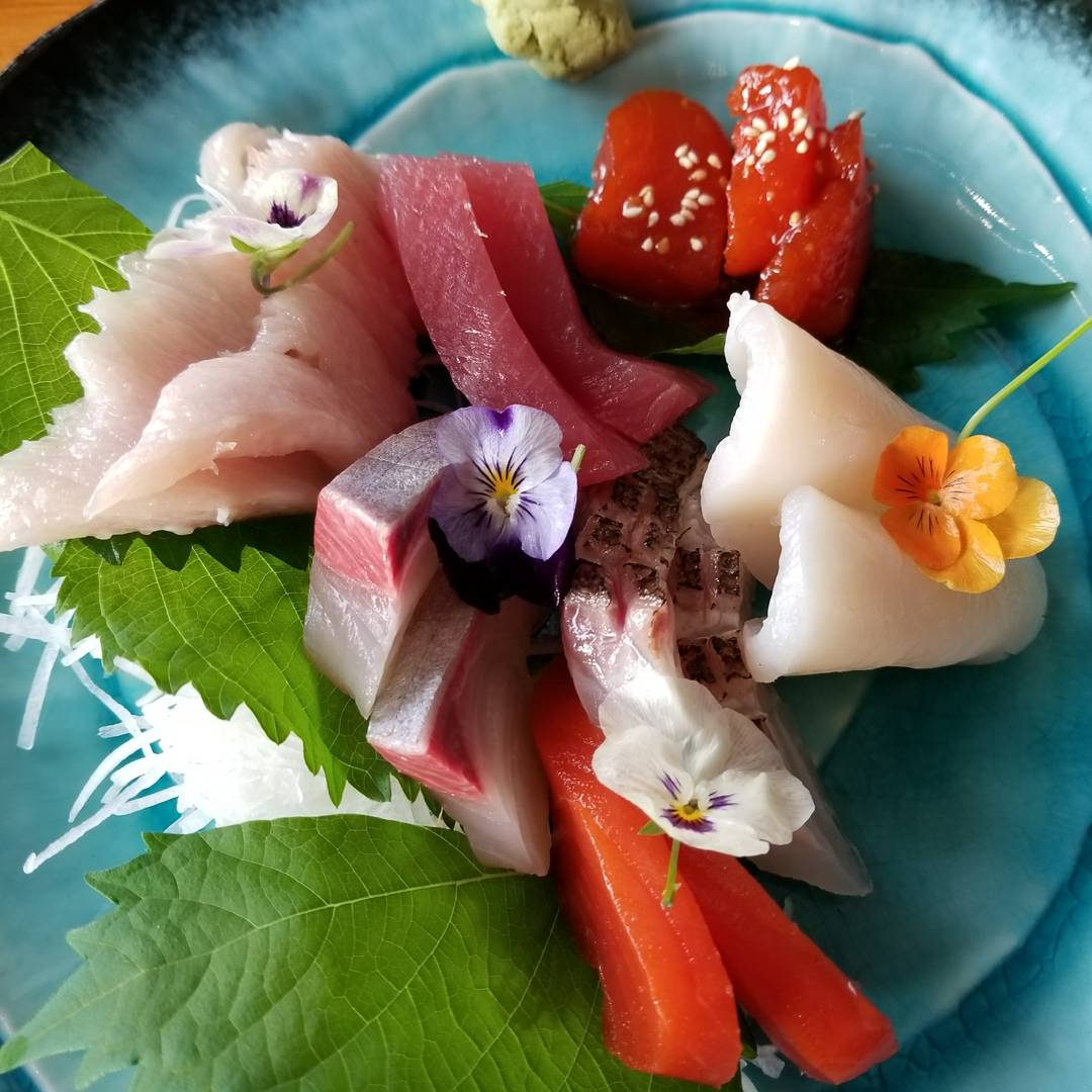 Now let’s get to the food! The presentation was on point with nice little touches, daikon flowers, real flowers, shiso leaves, beautiful plates. We even had an aburi salmon that came in a glass dome with smoke in it. Next level!  For our table of four, we definitely indulged…and kept indulging. It isn’t super cheap but if you don’t eat fancy sushi that often then it’s totally worth it. The sashimi was beautiful and the rolls were quite nice.