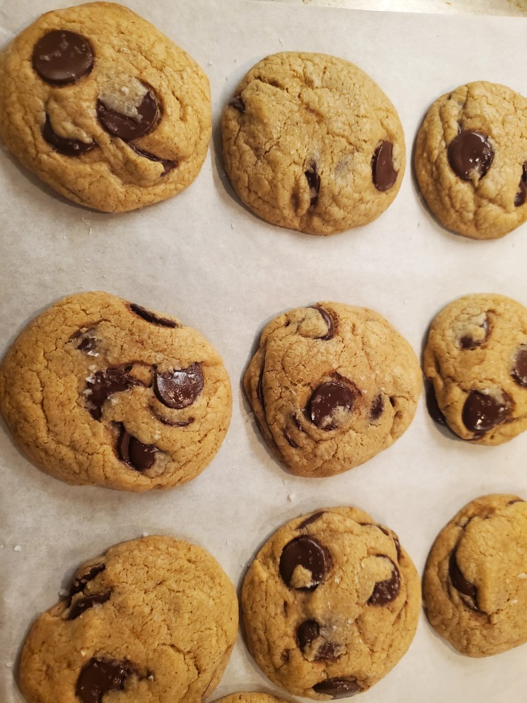 These delectable cookies are made with a lot of love! Cultured butter that is carefully browned for a lot of savoury nutty goodness, 70% dark chocolate, all topped off with flakes of Vancouver Island Sea Salt!